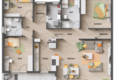 Stell dir vor, du wohnst im Winkelbungalow 128 mit zwei Bädern und zahlreichen flexiblen Nutzungsmöglichkeiten. Der Bereich neben dem Eingang lässt sich perfekt als Einliegerwohnung nutzen, als Arbeitsbereich für dein Home-Office gestalten, bietet sich zum Vermieten an oder kann von deinen Eltern genutzt werden, die den Alltag nicht mehr allein meistern, aber einen Ort zum Zurückziehen brauchen.